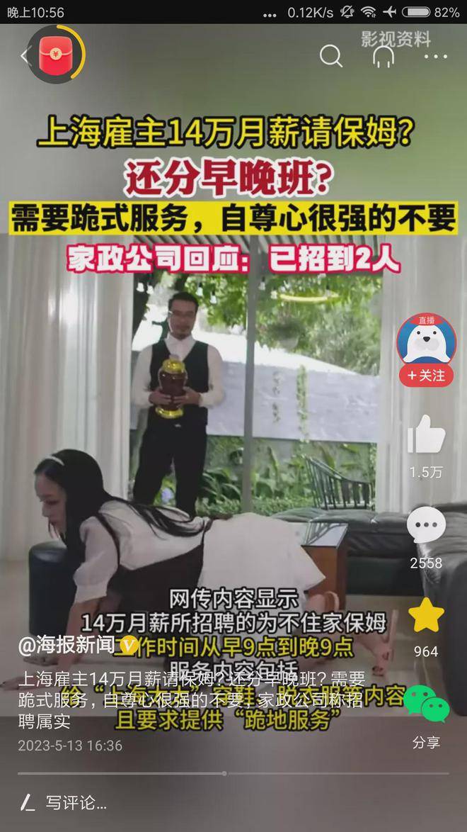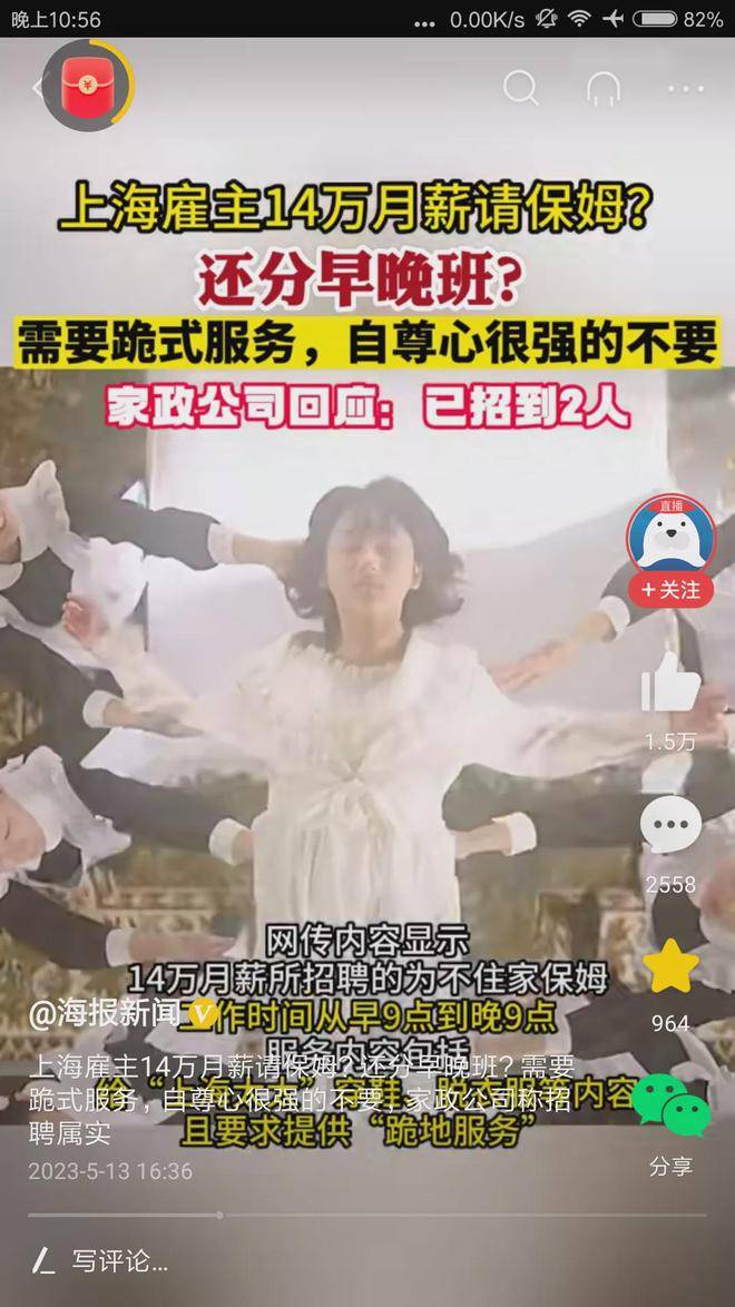上海招个保姆,动辄月薪14万,每天差不多5000元,妥妥的是天价保姆,刷新了我的认知,刚看到这个新闻时,我竟然不相信,后来仔细看,这个事的确是真的。