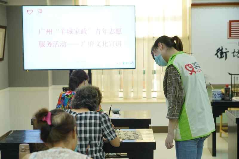 与以往临时的社区志愿服务“无处可去”“找不到人”相比,今年7月,团市委、市志愿者行动指导中心发挥广州志愿驿站的品牌效应,联合北京街党群服务中心,将全市首个室内型志愿驿站落户北京街党群服务中心的三楼,有效打通了志愿服务的供需渠道,为周边及过往居民提供更加便利的暖心服务。团市委组织专业志愿者在室内志愿驿站书画教室等地开展“长者墨香书社”及“广府文化宣讲”志愿服务活动,每场活动组织2名青年志愿者配合协助专业老师做好书法指导、图书整理等相关志愿服务,共同服务社区长者,每场活动服务长者超过60人次。负责讲解广府文化、为老人教书法的志愿者卜老师自己也年逾古稀,他做志愿服务已经超过20年,他认为老年人同样有服务社会的需求。他说:“我日常在城市原点志愿驿站等地为社区居民提供服务,后来很多退休人士熟悉了我,都对做志愿者产生了兴趣,大家听到在街道有了志愿服务阵地都感到很鼓舞!”在惠福东路的北京街党群服务中心一楼大厅,街道及志愿驿站的退休长者志愿者组成的服务队伍负责在忙时协助工作人员指引体温监测、接听志愿服务咨询电话、定期跟进服务对象关于服务效果反馈等。同时,每个班次安排至少1名青年志愿者协助北京街政务服务中心开展办事指引、家政服务链接咨询、就业创业指导、链接12355心理咨询等服务。
