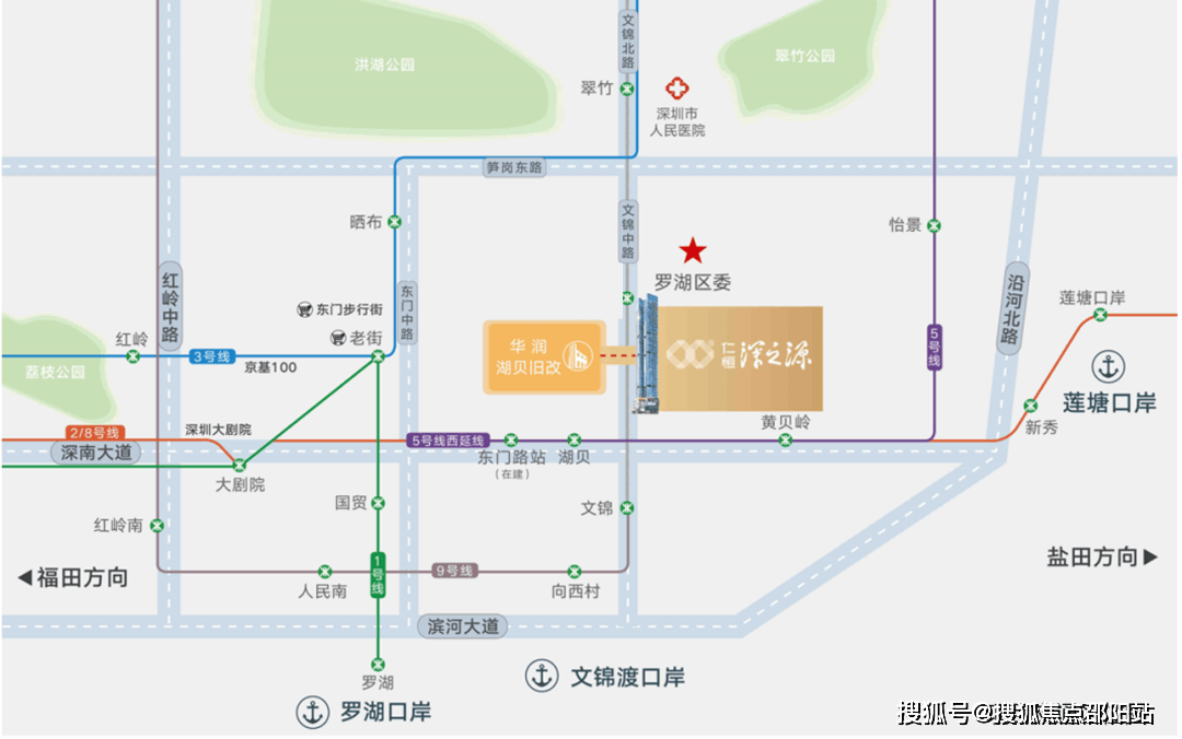 •「项目地址:」罗湖东门深南东路与文锦中路 交汇处,2/8 - 5号线米)