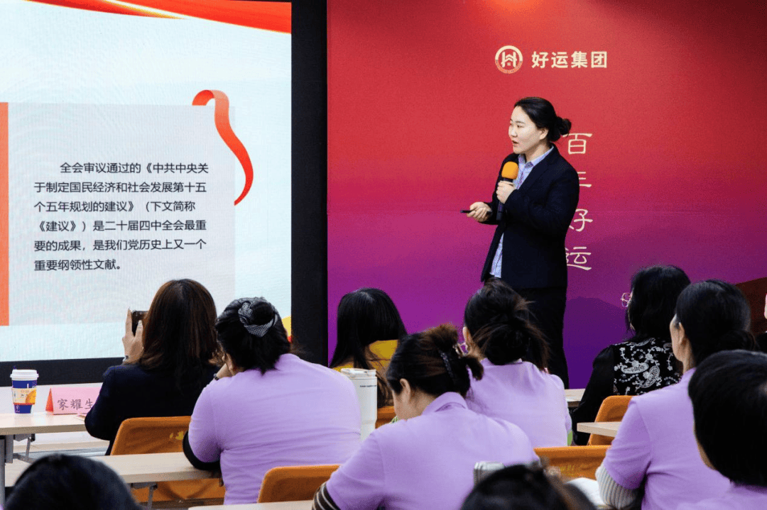 为深入学习宣传贯彻党的二十届四中全会精神,团结引领全市家政服务行业职工统一思想、把握方向、凝聚合力,12月30日上午,太原市家政服务行业工会联合会深入家政企业,在太原龙城好孕家庭服务有限公司举办了专题宣讲会。“劳模工匠”宣讲队宣讲员、太原市家政工会副主席陈慧芳向来自7家家政企业的55名一线职工,进行了主题鲜明、内容生动的宣讲。