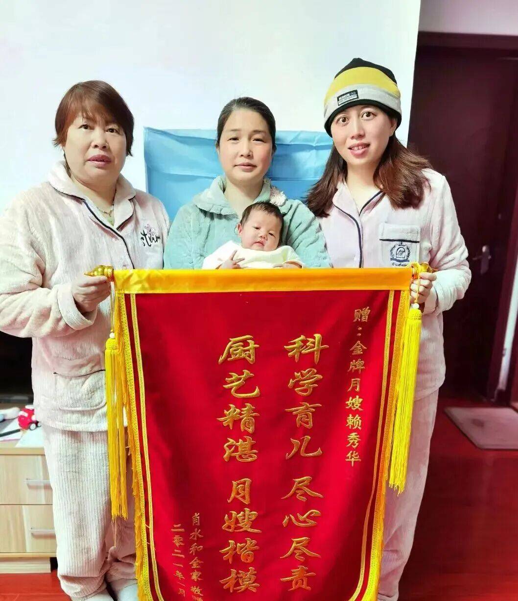 赖秀华,江西犹峰家庭服务有限责任公司金牌月嫂,拥有高级育婴师、高级营养师、高级母婴护理师、高级产后修复师、高级催乳师等近十项专业技能证书的“全能型”家政人。从业近十年来,她凭借过硬技能与赤诚服务,收获近二十面锦旗,在赣州家政服务行业,提起赖秀华的名字,许多她服务过的人都会竖起大拇指。