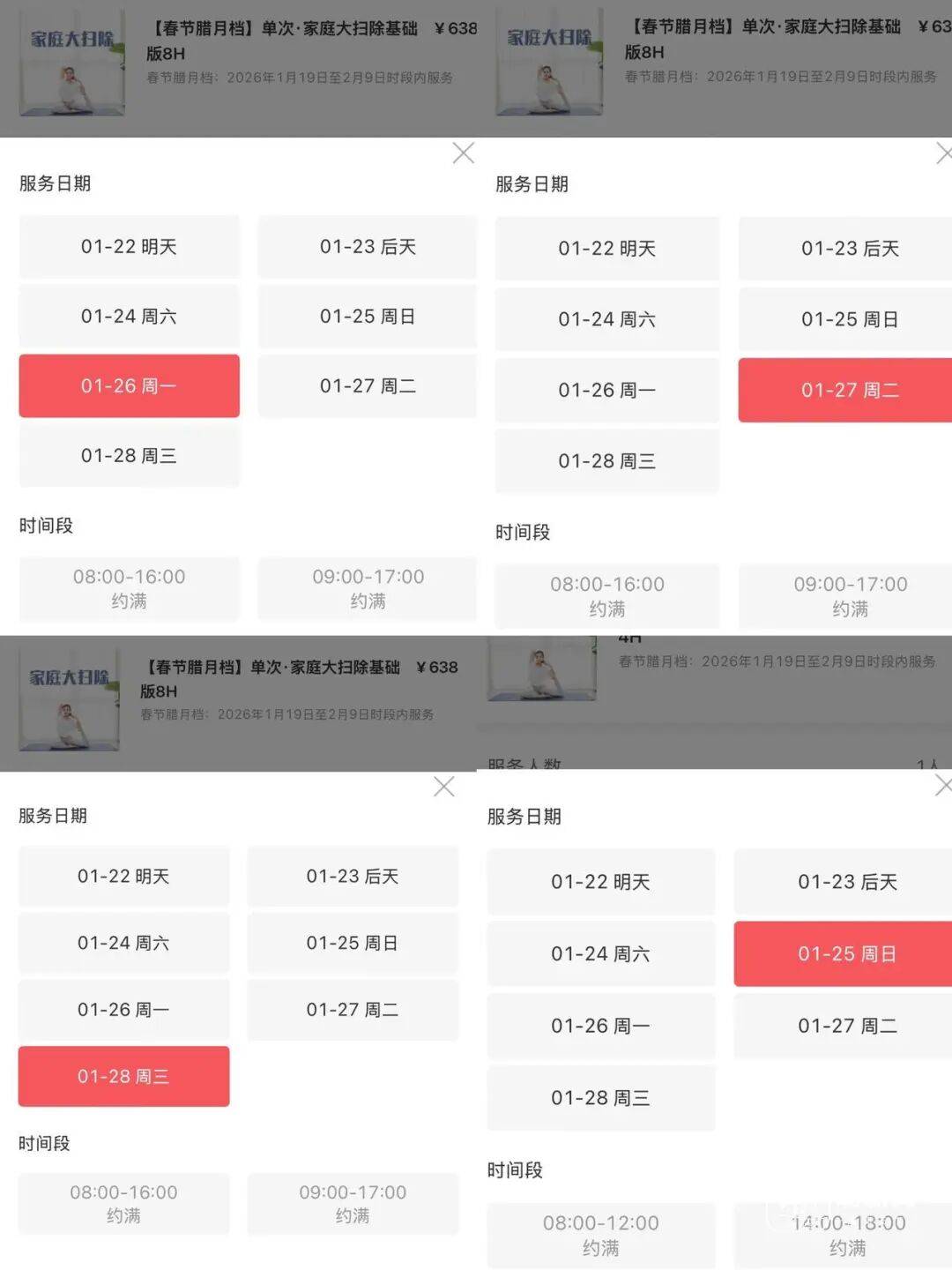 记者随机点进一家家政公司的app,发现未来多日的“8H单次家庭大扫除”服务早已被预约一空。
